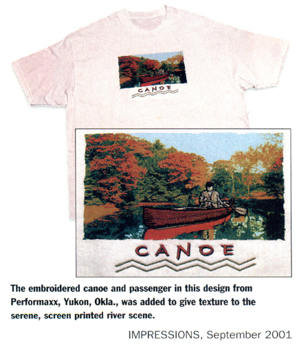 This Canoe Design, (in the lower right above), was featured in a past Impressions magazine issue that illustrated combinations of screenprinting and